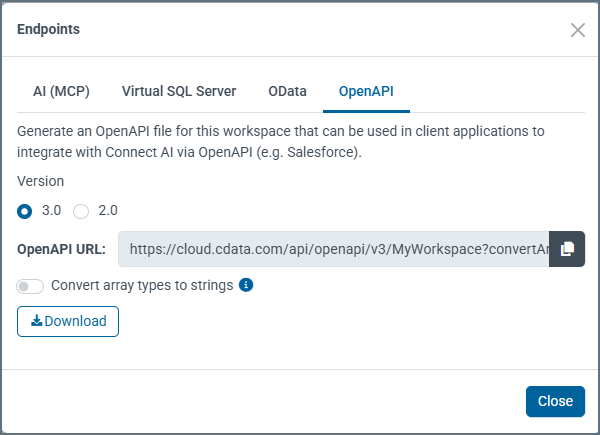 Connect AI now provides a full-featured API that can query data, perform batch operations, and execute stored procedures across all data sources configured in your account. Any REST-compatible application or client tool capable of creating HTTP requests can integrate with the API. For more information, see the REST API docs.Changes, improvements, and bug fixes